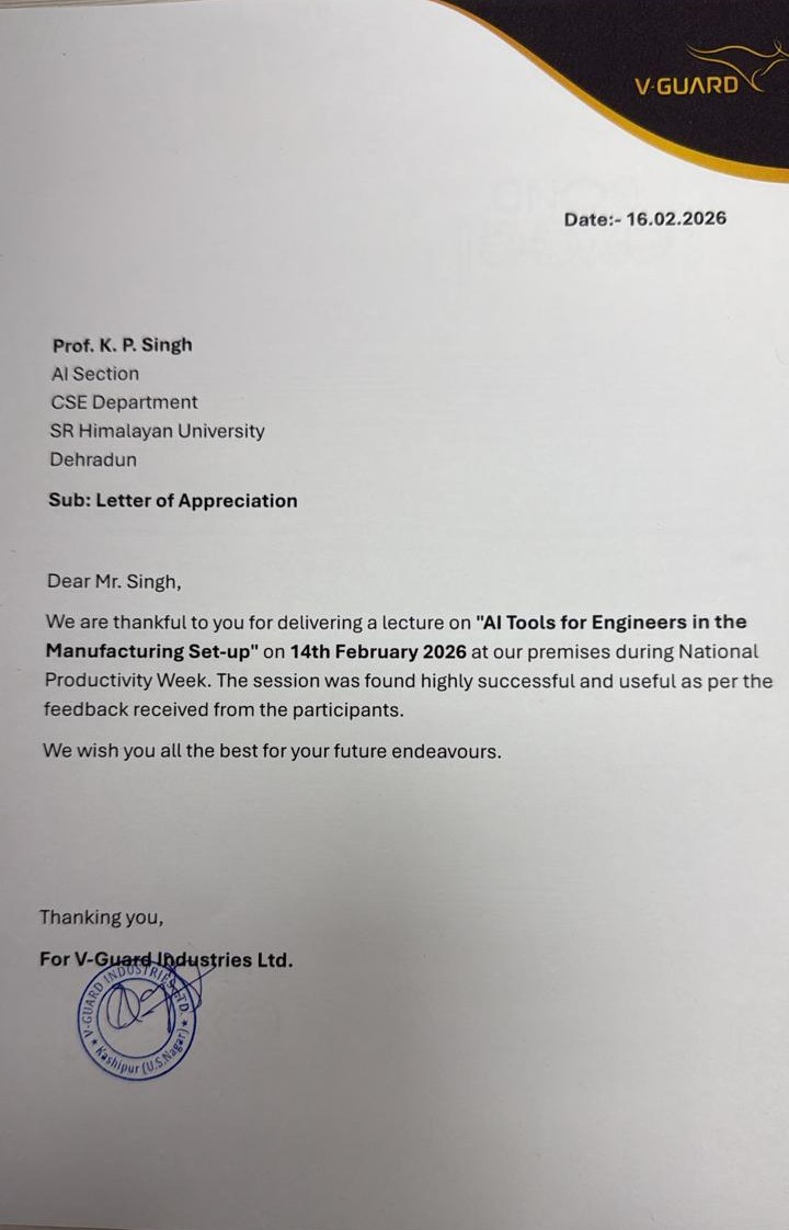 Invited Expert Lecture “AI Tools for Engineers in Manufacturing Set-up” Organization: V-Guard Industries Ltd. Date: February 2026